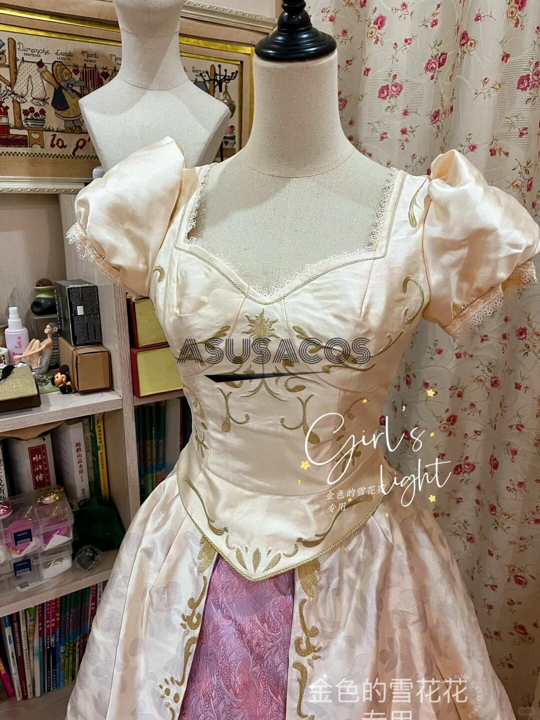 ASUSACOS 実物撮影!塔の上のラプンツェル コスプレ 衣装 劇場版 ゴールドドレスのウェディングドレス