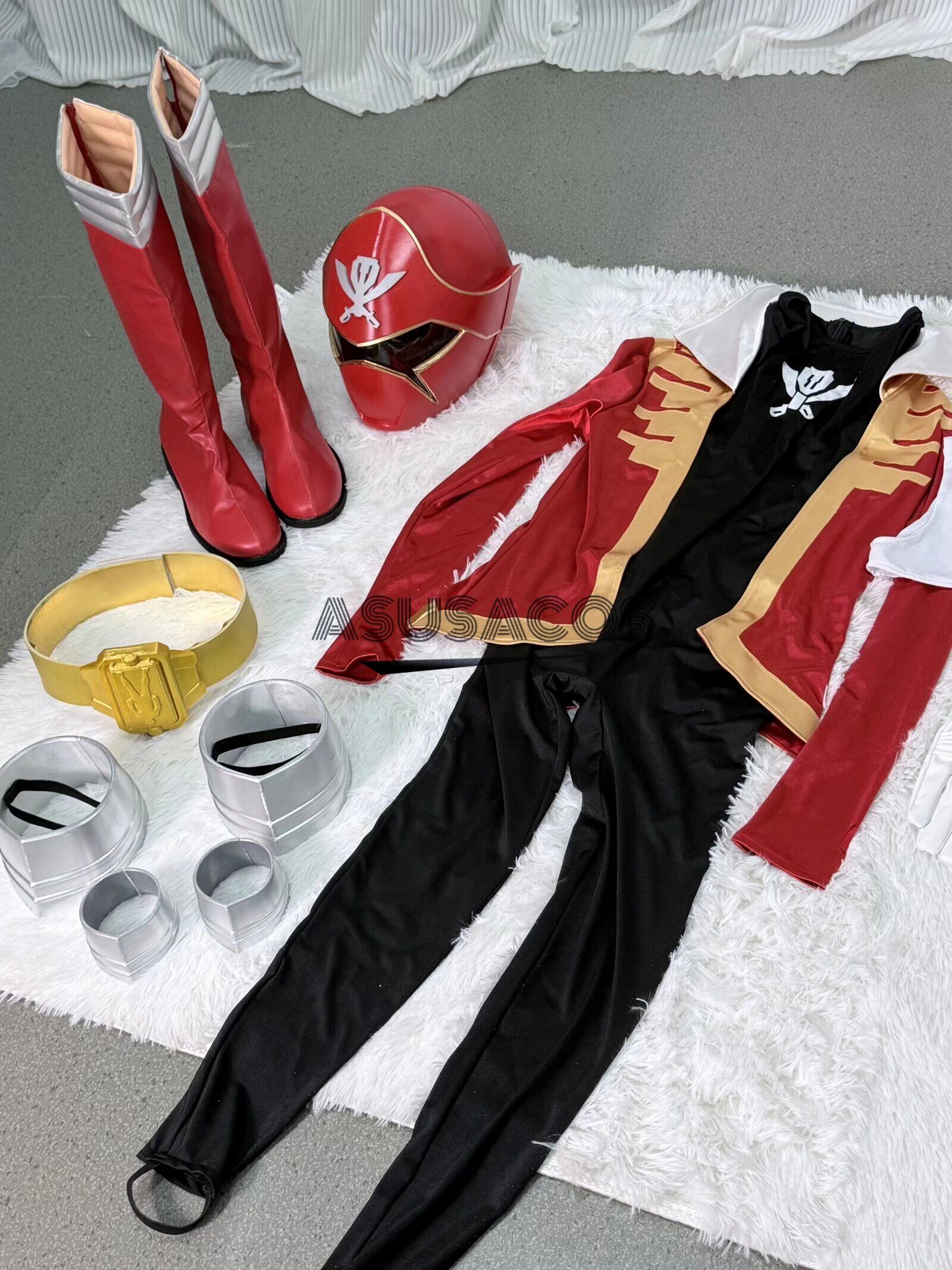 ASUSACOS 実物撮影! 海賊戦隊ゴーカイジャー ゴーカイレッド コスプレ 衣装+靴+仮面( 全セット))