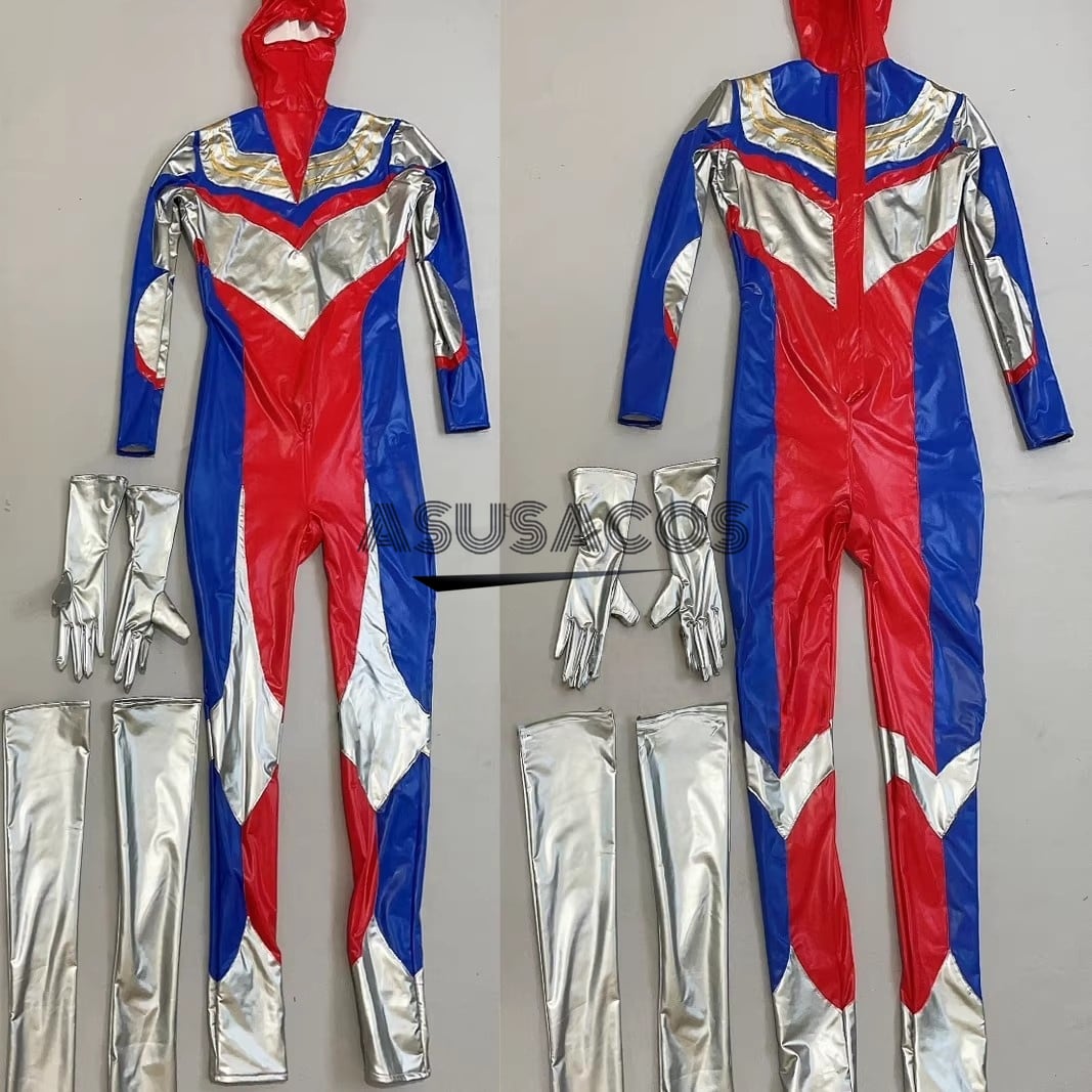 ASUSACOS 実物撮影! ウルトラマンティガ 全身タイツ 背びれ付き コスプレ 衣装(PU タイプ)